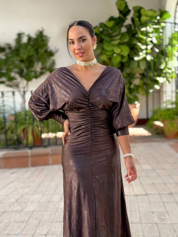 Choker ajustable con cadenita trasera. Detalle de espejitos sobre tejido dorado. Ligero, llamativo y perfecto para invitadas.