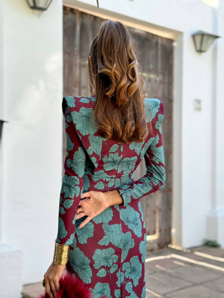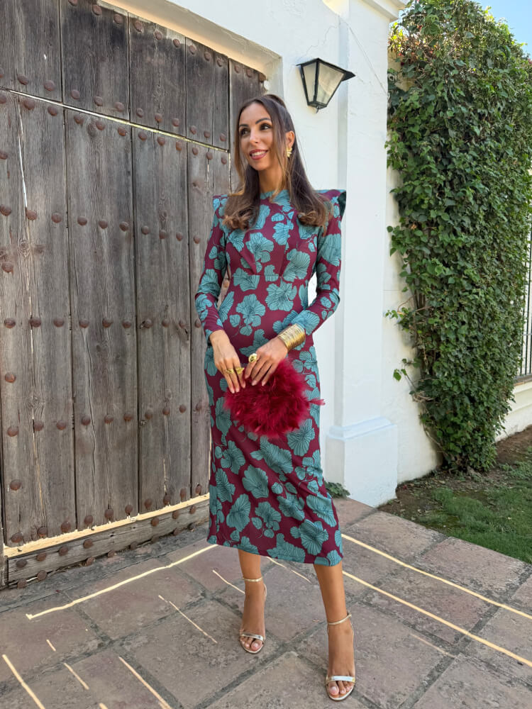 Vestido en tejido elástico con estampado vistoso. Corte elegante con cremallera trasera que se adapta al cuerpo con comodidad.