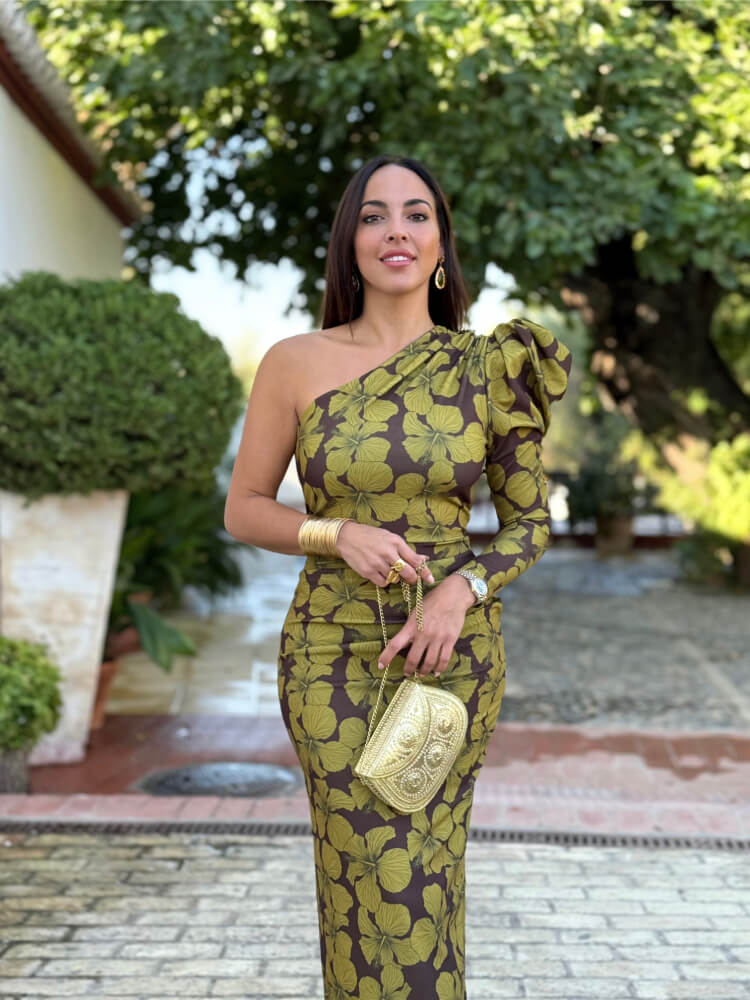 Vestido una manga flores verde